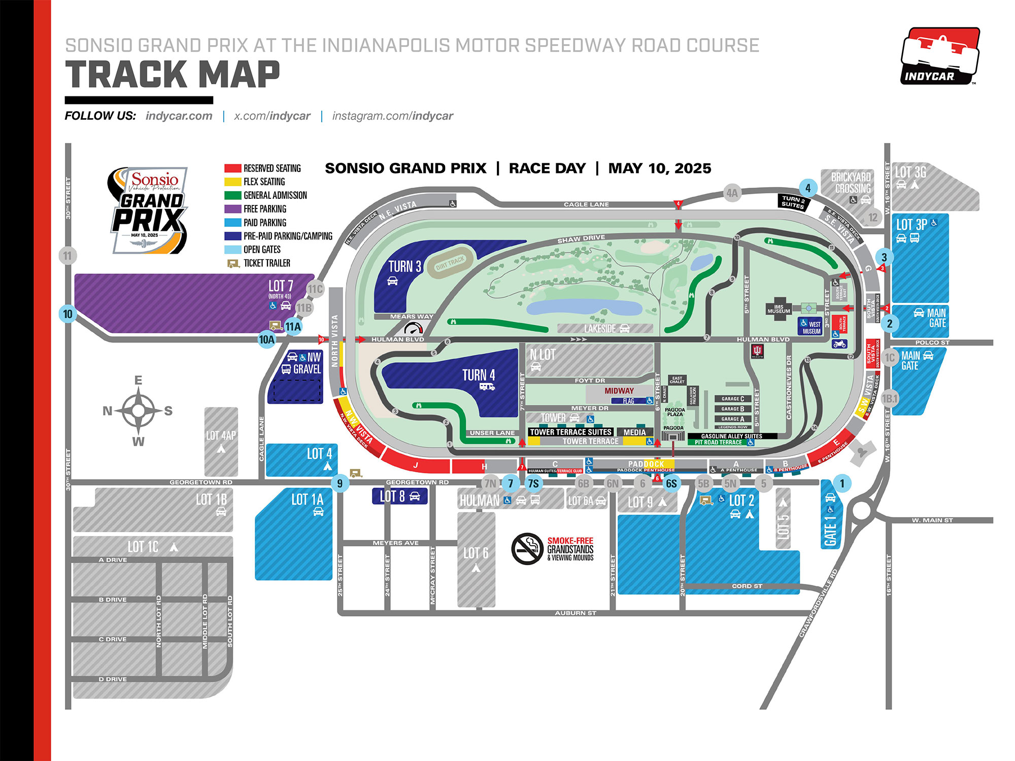 The 2.439-mile, 14-turn road course incorporates portions of Turns 1 and 2 and the frontstraight of the famed Indianapolis Motor Speedway oval and the remainder of the circuit is within the infield, allowing for great spectator viewing.