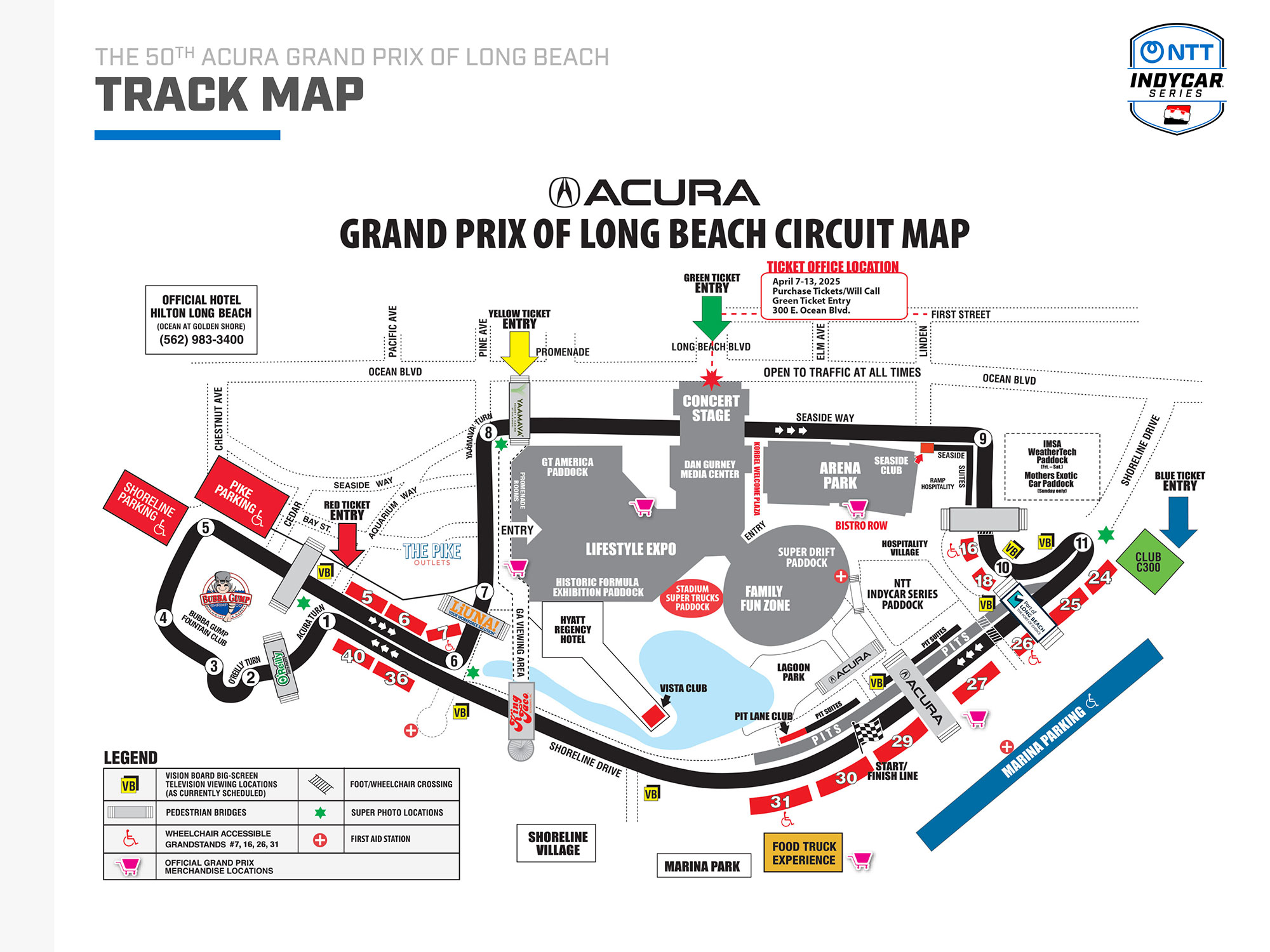 The 1.968-mile, 11-turn temporary street circuit encircles the Long Beach Convention Center -- which houses a Family Fun Zone and numerous displays during the race weekend -- and runs down scenic Shoreline Drive. It offers numerous overtaking opportunities, including Turn 1, getting the hairpin turn just before the frontstretch right is critical.