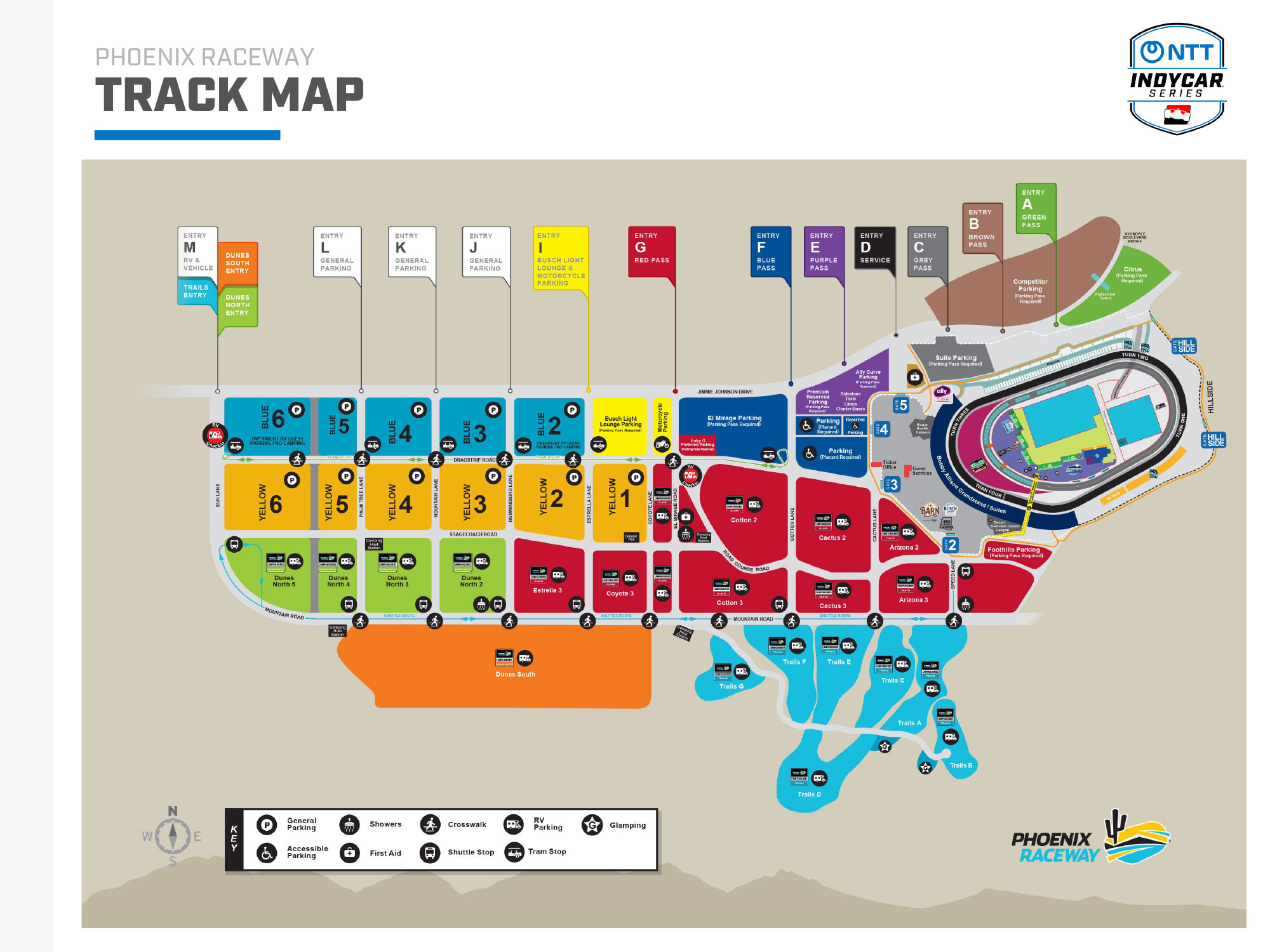 Phoenix Raceway, located in Avondale, Arizona, is a one-mile tri-oval known for its distinctive dogleg that sparks exciting passing and challenges the world's best drivers. Since opening in 1964, it has hosted a wide range of major racing series, cementing its reputation as a versatile motorsports venue. With modern amenities, fan-friendly access, and a scenic desert backdrop, Phoenix Raceway delivers thrilling competition and a unique atmosphere that continues to make it a standout destination for racing fans.